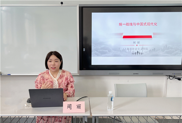 学习班邀请上海市社会主义学院副教授闻丽作《统一战线与中国式现代化》专题报告,从百年统战历程入手,带领大家感悟百年统战底蕴,追寻百年历史足迹,并以中共二十大精神为主线,详细阐述了什么是中国式现代化、统一战线在推进中国式现代化和中华民族伟大复兴中的重要作用。