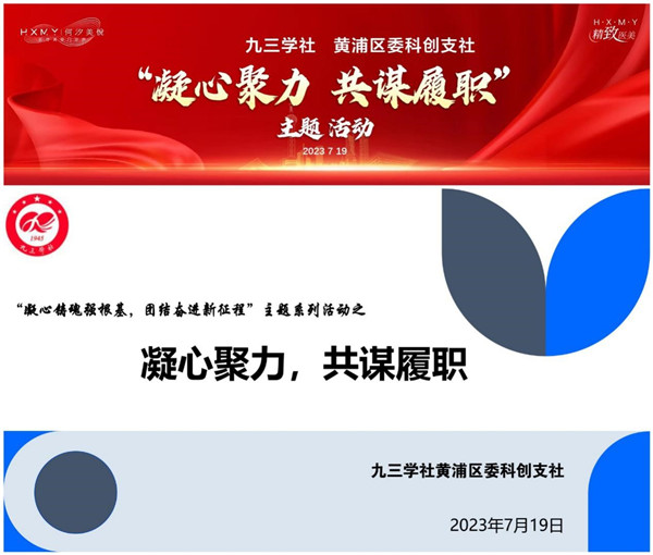 7月19日,为积极响应九三学社中央、社市委、社区委关于开展“凝心铸魂强根基、团结奋进新征程”主题教育要求,九三学社黄浦区委科创支社结合自身医疗、科技及大健康领域的专业特色,相聚于黄浦江畔保利大厦的何汐美悦医疗美容门诊部会议室,举行 “凝心聚力,共谋履职”主题教育活动。活动由科创支社主委卢成寅主持,25名社员参加。