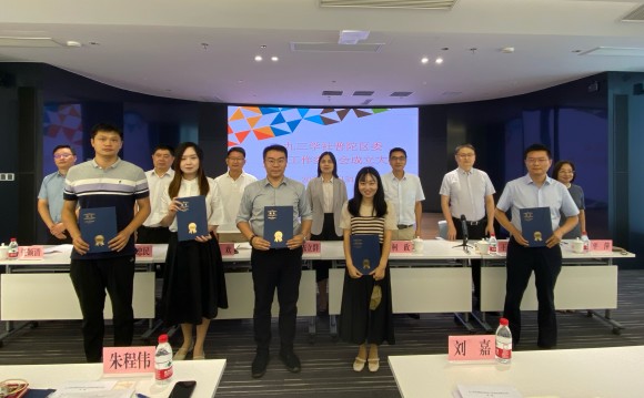与会领导们向全体青工委委员颁发聘书。社区委青工委主任朱程伟代表全体委员作表态发言。