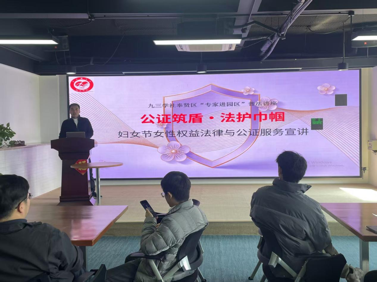 上海市奉贤区公证处公证员、社员陈丹,和上海美谷律师事务所合伙人律师、社员费嘉彬联袂主讲,两位专业人士紧扣不同节日的法治服务重点,量身打造三场主题鲜明、贴合园区职工工作生活实际的普法讲座。“3·5”学雷锋纪念日专场以“学雷锋送法上门・公证护航民生”为主题,聚焦基层日常法律维权痛点与公证实操知识,用通俗化的讲解让法治服务贴近群众、温暖民心。“三八”国际妇女节专场围绕“公证筑盾・法护巾帼”展开,针对女性在婚姻家庭、财产保护、人身权益等方面的核心法律需求,结合公证服务案例与法律条文解读,为女性职工送上专属法治保障。“3·15”国际消费者权益日专场以“公证固证・法护消费”为核心,详解消费维权中的法律要点、证据留存技巧,指导职工运用公证手段维护自身消费合法权益,助力营造安全放心的消费环境。
