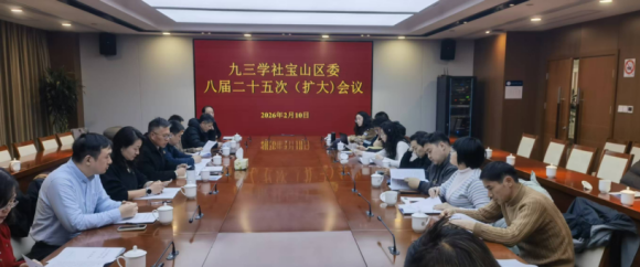 2月10日下午,九三学社宝山区委员会八届二十五次(扩大)会议在区政府第二会议室召开。会议全面回顾总结过往工作,系统谋划部署2026年度重点任务,进一步统一思想、凝聚共识,为全年工作开好局、起好步筑牢基础。社区委主委王培华主持会议,副主委李芳出席,社区委委员、各支社主委、专委会主任、监督委员会委员参加会议,社市委组织部相关同志应邀列席会议。