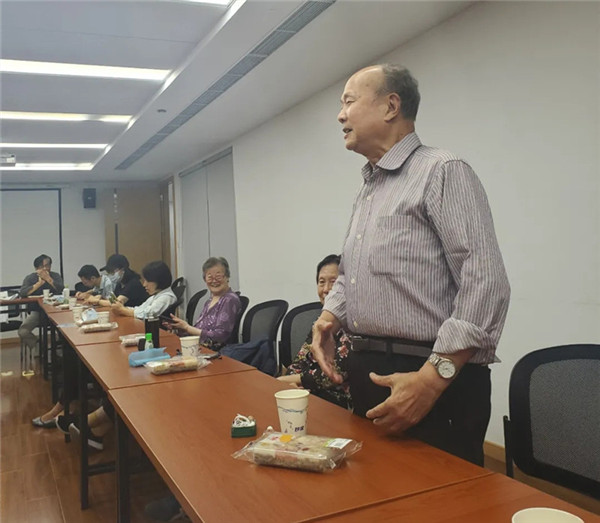 马左蔚还代表支社向老年社员致以重阳节的问候与祝贺,社市委老年工作委员会副主任、支社委员陈以文也分享了上海市重阳节期间的各种敬老活动信息。社员李亦达还激动地高歌一曲《党的恩情永不忘》。