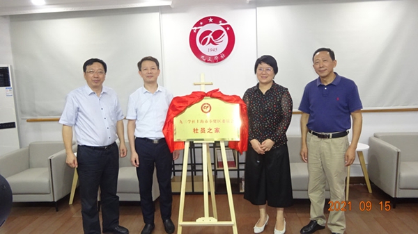 9月15日下午,九三学社上海市奉贤区委员会首个“社员之家”在新航星投资集团有限公司揭牌成立。奉贤区政府二级巡视员、区政协副主席、社区委原主委张开明,中共奉贤区委统战部常务副部长周斌,社区委主委汤东英,新航星投资集团有限公司董事长何志明,以及社区委班子成员、部分社员代表出席揭牌仪式。