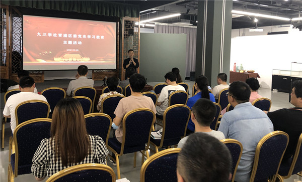 为开展中国共产党党史学习教育,庆祝中国共产党建党100周年,九三学社青浦区委按照《九三学社青浦区委关于开展中共党史学习教育的方案》,于8月28日组织社区委原主委、副主委,社区委委员,各支社班子成员,社内区人大代表、政协委员等30余人,在朱家角松涛剧场上了一堂文艺党课。