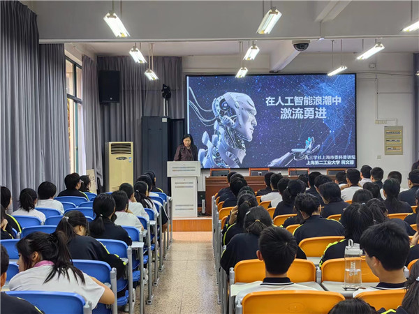 10月8日下午,由九三学社上海市委、九三学社奉贤区委与奉贤区教育局联合开展的“九三院士专家进校园”暨“九三学社上海市委科普讲坛”科普讲座活动在景秀高级中学举办。学校高一年级学生聆听了九三学社上海第二工业大学委员会主委、上海第二工业大学计算机与信息工程学院副教授蒋文蓉带来的《在人工智能浪潮中激流勇进》讲座。