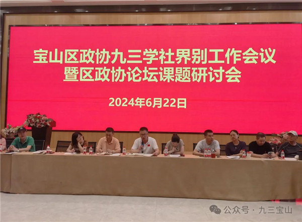 6月22日中午,九三学社宝山区委在上海建筑科技馆大报告厅召开了区政协九三学社界别工作会议暨区政协论坛课题讨论会,社区委主委王培华,副主委兼秘书长沈勇民,九三学社界别的区政协委员陈志洪、董昆及、黄明哲、苏雯等,各支社代表和课题组成员参加了会议。