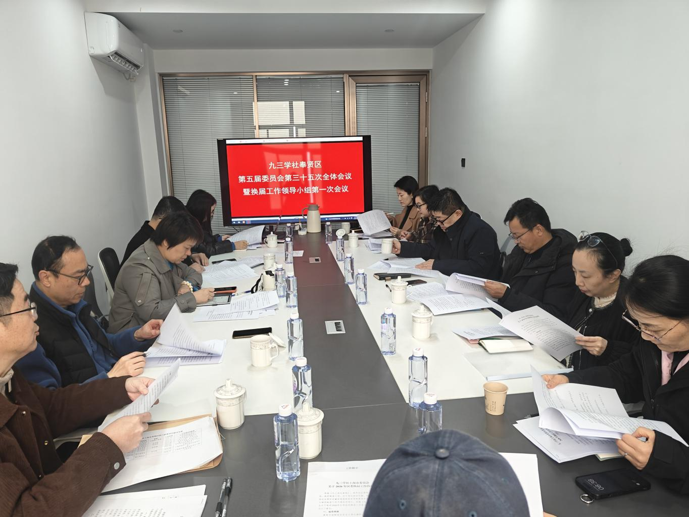 3月8日上午,九三学社奉贤区委员会召开第五届委员会第三十五次全体会议暨换届工作领导小组第一次会议。社区委主委汤东英,副主委李佩军、高嵩、沈遥,以及全体委员出席会议。秘书长宋永辉主持会议,社区委内部监督委员会主任孙健列席会议。