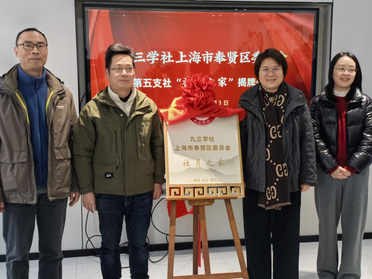 2月1日上午,九三学社奉贤区委员会第五支社“社员之家”揭牌仪式在臻龙基地隆重举行。社区委主委汤东英,副主委李佩军、沈遥,以及社区委、第五支社和其他支社代表近20人齐聚一堂,共同见证。