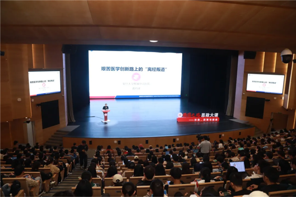 3月26日下午,刚刚成功完成“肾动脉超声消融(uRDN)系统”首例临床试验(点击链接查看详情)的葛均波,赶到复旦大学本部校区,面向临床医学、口腔医学、预防医学、公共事业管理和护理学专业2023级本科700余名新生讲授“强国之路”思政大课,这也是医科大类首场专题大课。