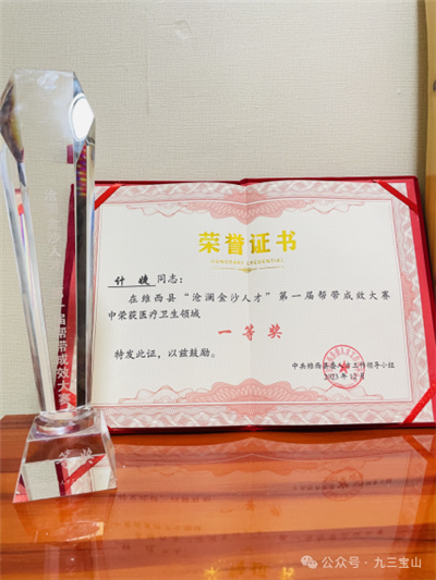 帮扶期间,计婕获得了维西县“沧澜金沙人才”第一届帮带成效大赛医疗卫生领域一等奖,同时被评为“优秀帮扶专家”,且在维西县人民医院年度考核中被评定为优秀。