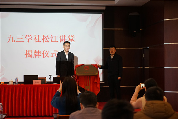 4月15日,九三学社松江区委在活水协同创新园举办“九三学社松江讲堂”揭牌仪式。九三学社上海市委学习和社史工作委员会主任郝勇、社松江区委主委李博共同为讲堂揭牌。社市委宣传部副部长曹晓燕,社区委副主委储知秋、秘书长刘严出席活动。
