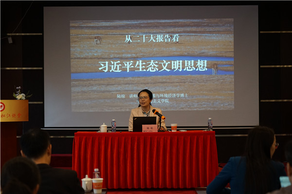 揭牌仪式后,社区委特邀中央社会主义学院马克思主义理论教研部讲师,人口、资源与环境经济学博士陆琼作题为《从二十大报告看习近平生态文明思想》的报告。
