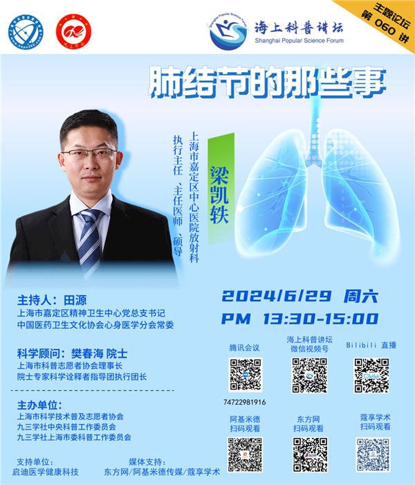 本期,上海市嘉定区中心医院放射科执行主任、主任医师、硕士生导师梁凯轶将为我们讲解关于肺结节的知识。