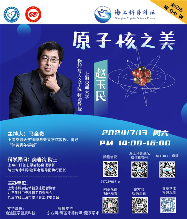 本周六,上海交通大学物理与天文学院特聘教授赵玉民将带来专题报告,与大家一同探索《原子核之美》。