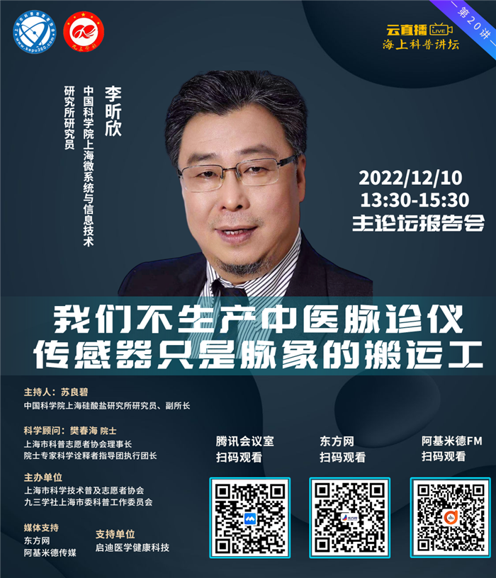 以上这些疑问,都将在本期的报告会中一一得到解答。想了解传感器用于中医脉象诊断的故事,请锁定本周六海上科普讲坛!