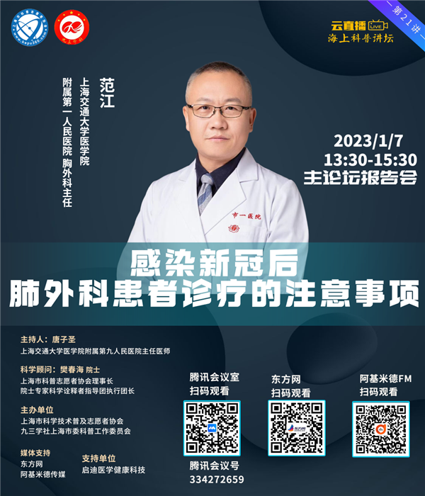 上海交通大学医学院附属第一人民医院胸外科主任范江将为大家解读《感染新冠后肺外科患者诊疗的注意事项》。