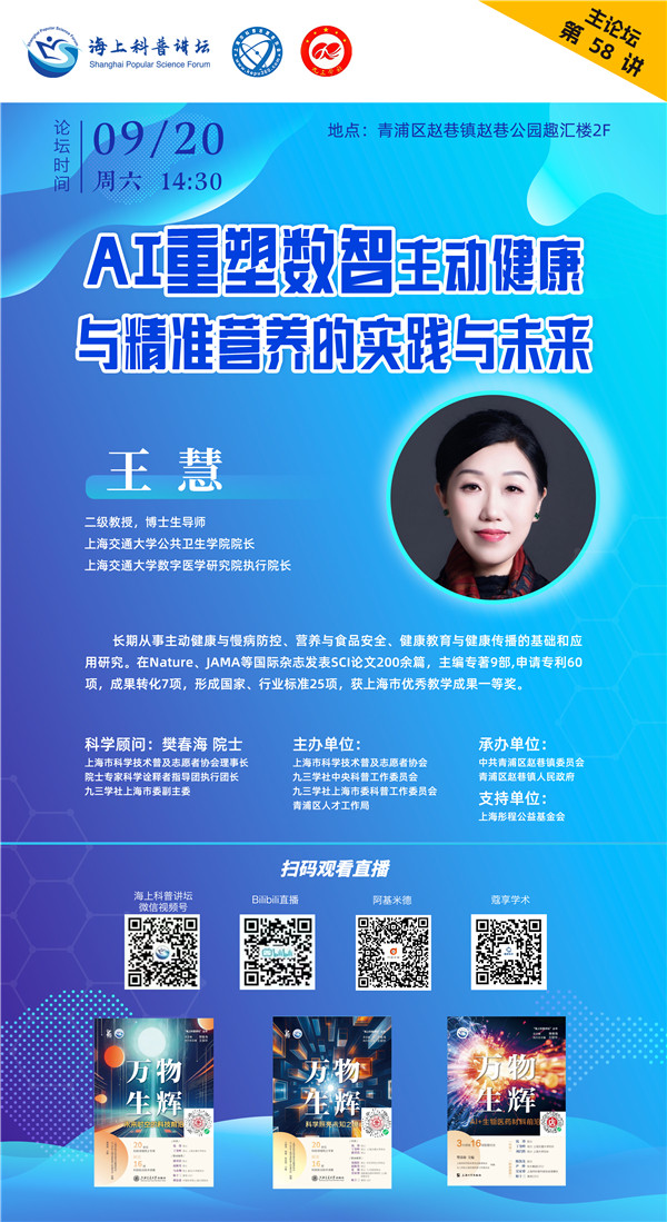 如何实现疾病防控关口前移、提升健康管理效率,已成为全社会高度关注的议题。AI不仅带来一场技术革命,更成为健康管理范式的“重塑者”。本期特邀上海交通大学公共卫生学院院长、上海交通大学数字医学研究院执行院长王慧,带来专题报告《AI重塑数智主动健康与精准营养的实践与未来》,和大家聊聊AI技术为健康管理提供的新思路。