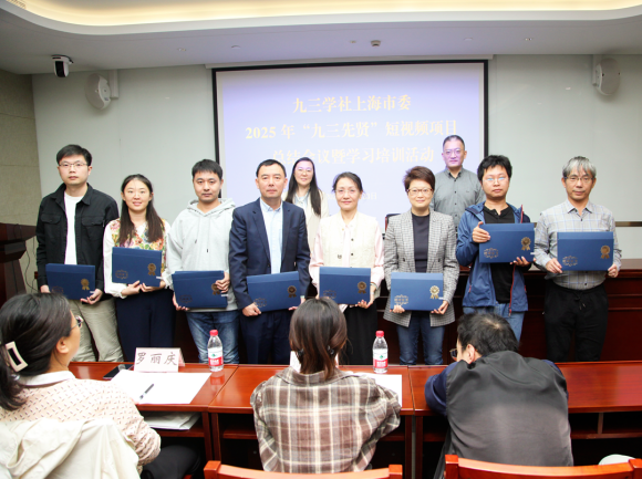 2025年10月23日,在“九三先贤”短视频项目培训暨结项会上,社市委专职副主委詹咏为项目组颁发结项证书。