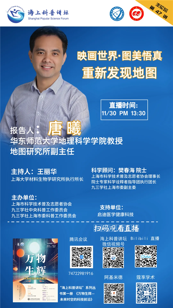 本周六,华东师范大学地理科学学院教授、地图研究所副主任唐曦将带来专题讲座《映画世界·图美悟真:重新发现地图》,带领大家一起领略地图之美。