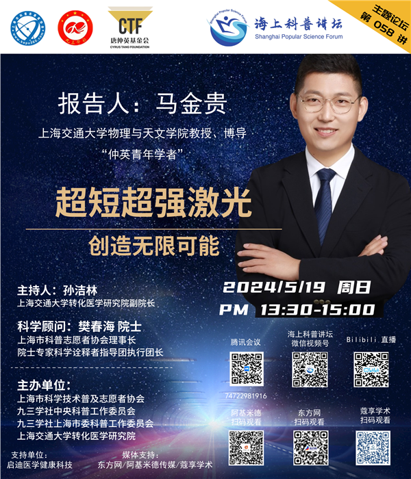 本周日,上海交通大学物理与天文学院教授、博士生导师、“仲英青年学者”马金贵将带来报告《超短超强激光创造无限可能》。报告将从激光原理出发,重点介绍激光在“超短”和“超强”两个方向的发展以及这些发展对其他领域的推动作用,包括在桌面粒子加速器和激光聚变能源等前沿领域的应用前景,最后介绍超短超强激光的未来发展趋势。