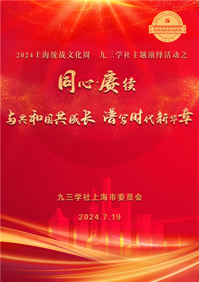 7月19日下午,2024上海统战文化周九三学社主题演绎活动之“同心·赓续——与共和国共成长,谱写时代新华章”文艺演出即将开始!