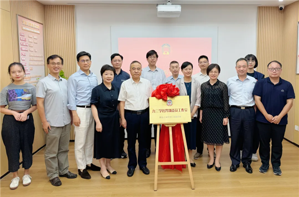 8月29日下午,徐汇区政协九三学社界别委员工作室在徐汇区新型人才社区党群服务站揭牌成立。区政协副主席施斌,区政协九三学社界别活动召集人、九三学社徐汇区委副主委肖慧奇,漕河泾街道党工委书记朱莺,区政协地区指导委主任人选沈文萍共同为工作室揭牌。区政协人口资源环境委员会主任卢义耀主持揭牌仪式。