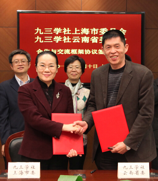 2月10日,“九三学社上海市委与九三学社云南省委合作交流框架协议签约仪式”在上海市民主党派大厦二楼会议室举行。九三学社中央副主席、上海市副市长、九三学社上海市委主委赵雯,云南省政协副主席、九三学社云南省委主委曾华出席签约仪式。