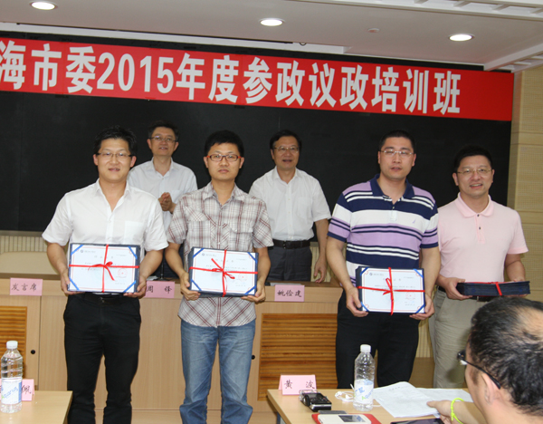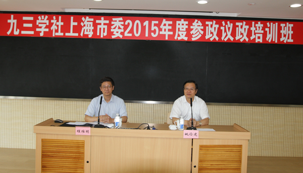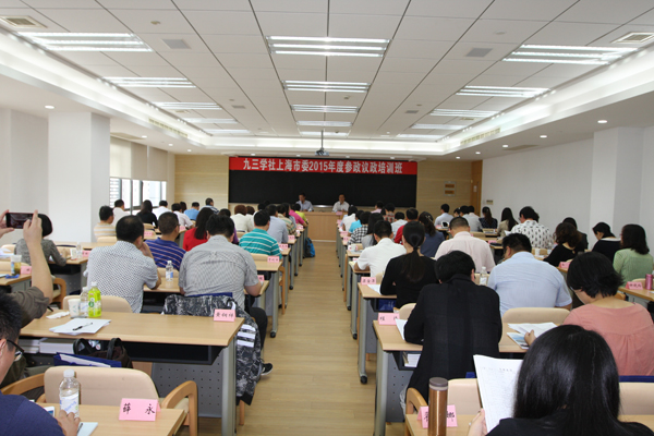 7月8日至11日,九三学社上海市委举办了为期四天的2015年度参政议政培训班。社市委副主委程维明、周锋,市社会主义学院副院长姚俭建,出席此次培训班,来自各基层的参政议政骨干社员共77人参加了培训。