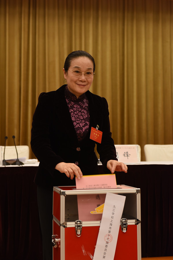出席会议的83位新一届社市委委员以无记名投票方式选举产生了九三学社上海市第十七届委员会主任委员、副主任委员和常务委员。赵雯当选为主任委员,陈义汉、周锋、钱锋、葛均波、李昕欣、吴健生、朱自强、刘成良、李安当选为副主任委员;王育等33位同志当选为常务委员。