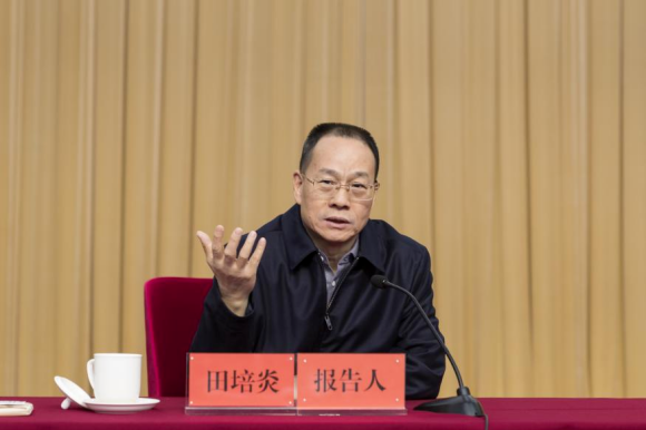 1月18日上午,九三学社中央举办学习贯彻中共二十届四中全会精神宣讲报告会。九三学社中央主席武维华、常务副主席邵鸿,副主席丛斌、黄润秋、刘忠范、刘政奎、葛均波、赵静、刘晓梅参加学习。会议邀请中共中央宣讲团成员、中央政策研究室原副主任田培炎同志做宣讲报告,副主席丛斌主持。宣讲报告会同时作为社中央第12期政治辅导“网络课堂”。