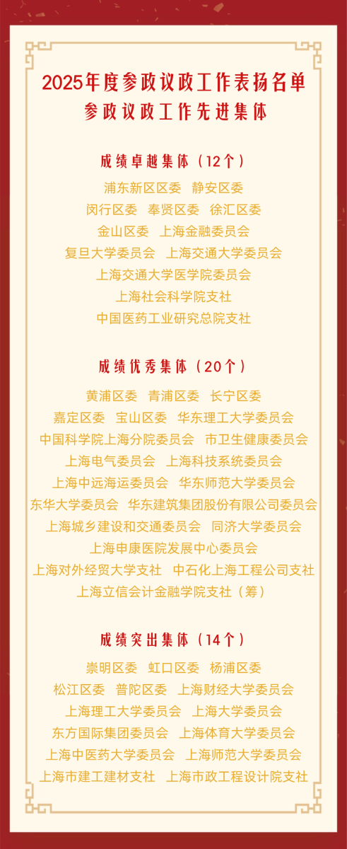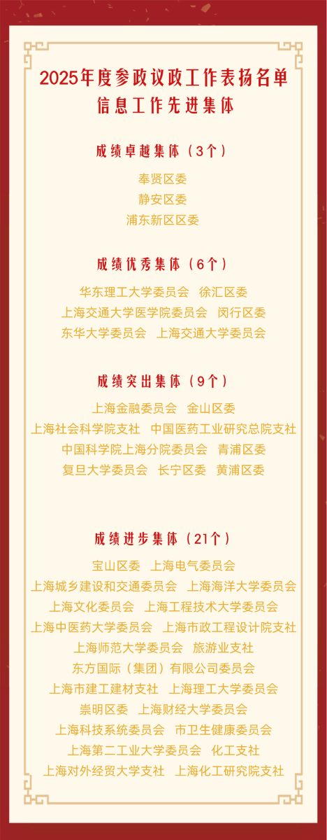 会上,张娣芳通报了2025年社市委参政议政工作情况,对一年来社市委在服务国家重大战略、助力区域高质量发展、加强协同联动、提升议政建言质效等方面开展的工作进行回顾总结,并宣读《关于表扬2025年度参政议政工作先进集体和先进个人的通知》。