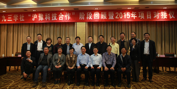 4月24日,九三学社“沪豫科技合作”阶段回顾暨2015年项目对接会在河南郑州举行,这是九三学社上海市委和河南省委联合举办的第七届项目对接会,共有上海交大农学院、上海化工研究院、上海市旅游局、上海中医药大学附属龙华医院、复旦大学、中科院上海生命科学院等6个单位与河南省社平顶山、安阳、濮阳、洛阳市委、社中原工学院、河南省科学院委员会等6个组织、单位申报的8个合作项目初步达成合作意向,项目涉及教育、畜牧业、化工、旅游、医疗等诸多领域。河南省政协副主席、社河南省委主委张亚忠,社上海市专职副主委周锋出席会议并讲话。社上海市委秘书长朱红,社上海市委常委、上海市旅游局副局长景莹以及项目专家、社河南省委部分基层委员会代表参加了会议,会议由社河南省委专职副主委陈志民主持。