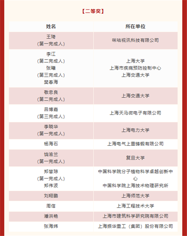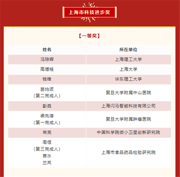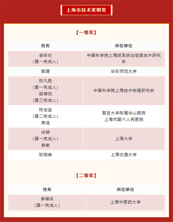 (以下名单以“上海科技”微信公众号中公布的获奖名单顺序为序)