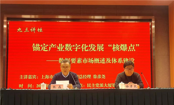 为使广大社员更好了解我国数字要素市场的建设发展,2023年12月5日,九三学社上海市委举办以“锚定产业数字化发展‘核爆点’——数据要素市场概述及体系建设”为主题的“九三讲坛”,社市委社会与法制专门委员会委员、上海市数据交易所副总经理徐彦尧作专题报告,社市委副秘书长、参政议政部部长张磊主持。
