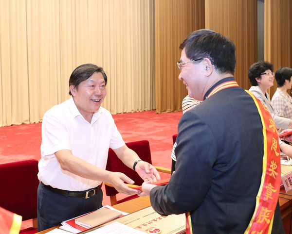 8月17日下午,全国卫生计生系统先进集体、先进工作者和劳动模范及“白求恩奖章”获得者表彰大会在京隆重召开。我社葛均波院士荣获“白求恩奖章”。(九三学社上海市委)