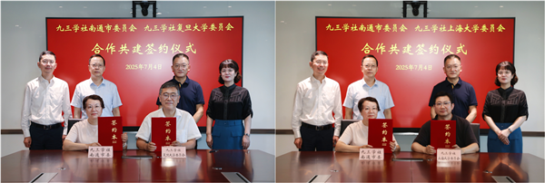 随后,社复旦大学委员会副主委周磊、社上海大学委员会主委许斌分别代表各自基层组织与社南通市委专职副主委兼秘书长张爱娟签署合作共建框架协议。詹咏、季红星、张明星、翟玉英在场见证。
