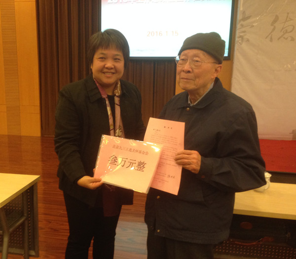 1月15日,九三学社上海市委秘书长朱红带领相关部室负责同志来到东华大学,看望慰问社东华大学委员会社员陈人哲教授,代表社中央送去3万元北京九三王选关怀基金,朱红还向陈人哲宣读了韩启德亲笔签名的慰问信。94岁高龄的陈人哲手捧慰问信和慰问金十分感动,他连声感谢社中央、北京九三王选关怀基金会对他的关怀与照顾,表示将以积极乐观的心态面对生活,战胜癌症病魔,为国家、社会贡献自己的一份余热。