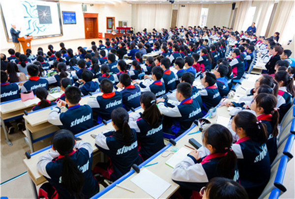 报告中,杨雄里院士用生动的事例、图片、电影片段与蒙山中学的学子们一起探索大脑,一起寻找情感、思想、记忆、梦境等所有这一切的根源。通过深入浅出地介绍,孩子们了解了目前在脑研究领域已经完成的研究工作和将来可能要完成的工作。报告会后,学生们为能近距离接触中国科学院院士激动不已,纷纷抓住这个难得的机会向杨雄里院士提问,现场气氛热烈、活动结束之时掌声雷动。