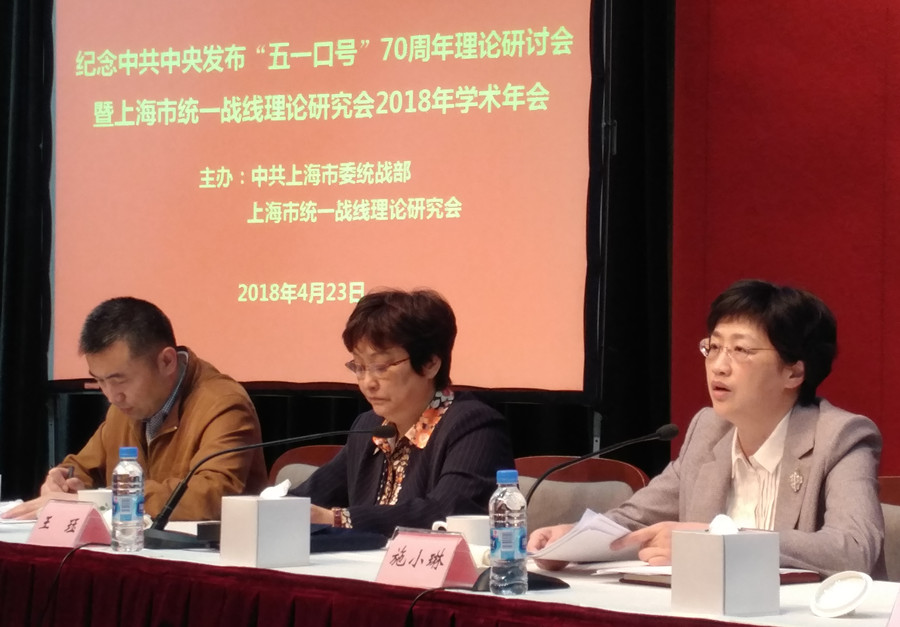 4月28日,中共上海市委统战部和上海统战理论研究会在上海图书馆联合举办纪念中共中央发布“五一口号”70周年理论研讨会。中共上海市委常委、市委统战部部长施小琳出席会议并讲话,市统一战线理论研究会会长、中共上海市委统战部副部长王珏主持会议。九三学社上海市委专职副主委周锋出席会议,社市委副主委、中国工程院院士、华东理工大学副校长钱锋代表社市委作题为《不忘初心,携手共进,开启新征程》的发言。