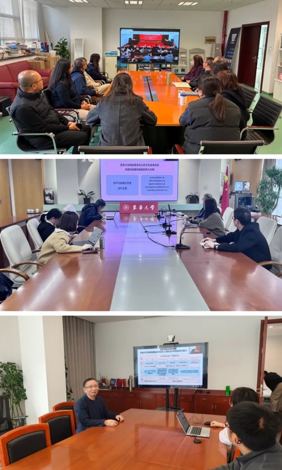 九三学社上海市委专职副主委詹咏、李国娟,秘书长张磊带领全体机关干部集体收看了学习直播。社徐汇区委、普陀区委、虹口区委、宝山区委、嘉定区委、金山区委、奉贤区委、中国科学院上海分院委员会、上海外国语大学委员会、东华大学委员会、东方国际(集团)有限公司委员会、上海电气委员会、上海文化委员会、上海科技系统委员会、上海财经大学委员会、华东建筑集团股份有限公司委员会、上海市政工程设计院支社、华东政法大学支社、上海体育科学研究所直属小组等全市各级社组织积极组织广大社员通过观看直播参加了学习。