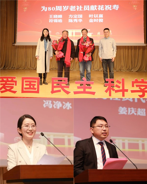 会上,优秀社员代表冯净冰、姜庆超作了发言,并由2023年入社新社员向80周岁老社员献花祝寿。