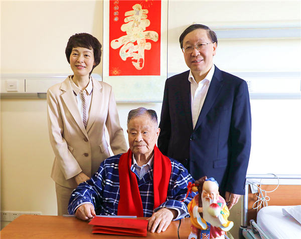 受中共中央统战部委托,董依雯转达了中央统战部对杨老的生日祝福,同时代表市委统战部祝杨老身体健康、福如东海。钱锋代表社市委送上生日祝福,他说,“前不久在九三学社全国传统教育基地——上海交通大学校史博物馆里‘看到了’您的卓越成就,您为国家做了很大贡献,今天在这里看到您感到非常高兴,您是我们国家的宝贝、九三学社的宝贝、上海的宝贝。”当得知医院上午还为杨老送上长寿面,唱起《生日快乐》歌时,钱锋表示,非常感谢医院对杨老的悉心照顾,感谢医护人员用心呵护杨老的生活起居和身体情况。