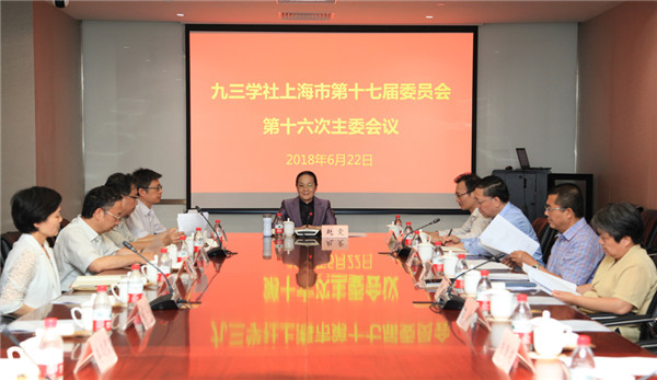 2018年6月22日下午,九三学社上海市委召开第十七届常务委员会第六次会议,传达学习统一战线深入学习贯彻习近平新时代中国特色社会主义思想和中共十九大精神专题研讨班精神,传达学习社中央常委会议精神。九三学社中央副主席、市政协副主席、社市委主委赵雯出席会议并讲话。