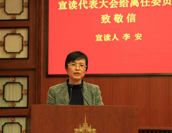 李安宣读了大会给各位离任委员的《致敬信》,代表全市社员,向不再担任市委委员的同志多年来对九三学社事业的无私付出和全情投入致以最崇高的敬意。