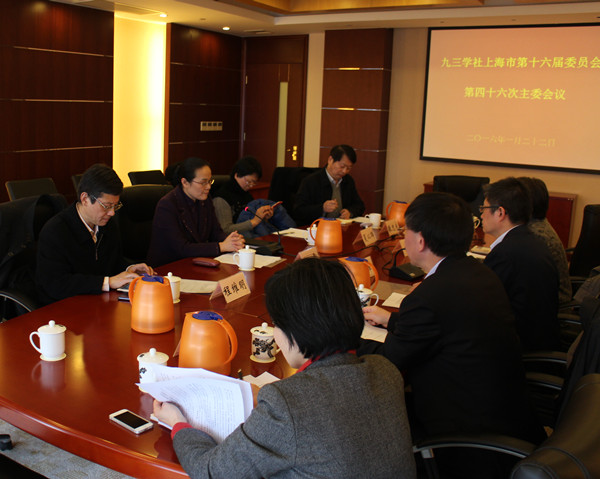 1月22日,九三学社中央副主席、上海市副市长、社市委主委赵雯主持召开九三学社上海市第十六届委员会第四十六次主委会议,传达学习党外人士新年学习会精神,审议社市委2016年工作重点。
