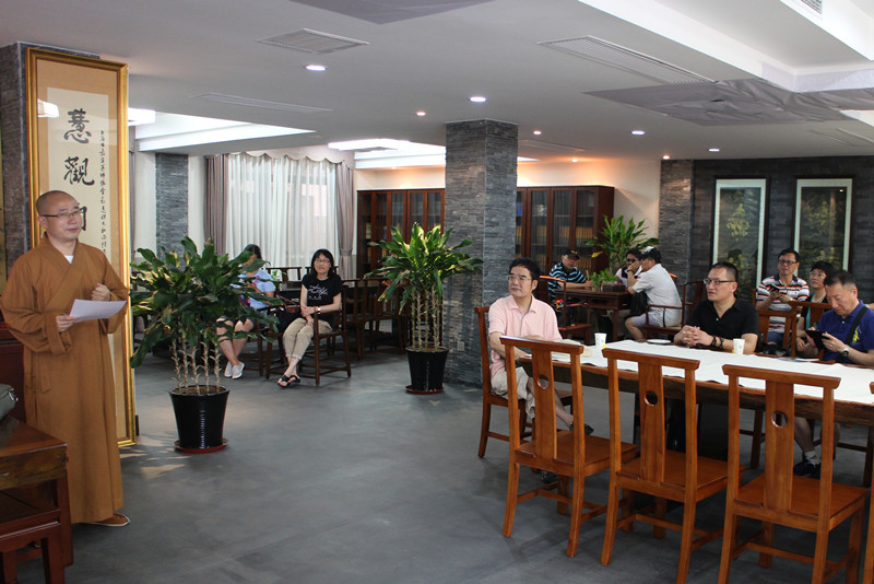 在万佛寺六和居大堂,慧证法师简单介绍了嘉定区佛教协会近年来在爱心资助、服务社会等方面做出的成绩;朱少伟也简单介绍了社市委学习宣传委员会和上海九三学社画院的情况。
