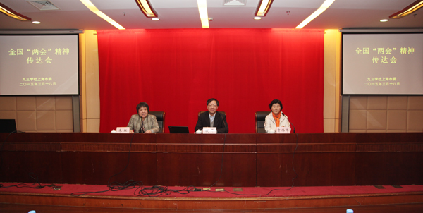 3月18日下午,九三学社上海市委召开全国“两会”精神传达会,全国政协委员、华东理工大学副校长、社市委副主委钱锋和全国人大代表、上海市第六人民医院院长、社市委常委贾伟平分别传达了全国政协十二届三次会议和十二届全国人大三次会议精神。社市委秘书长朱红主持会议。部分社员及社市委全体机关干部等近百人参加会议。