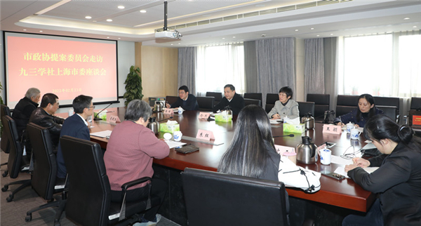 2月23日上午,上海市政协常委、提案委员会主任俞烈,上海市政协常委、提案委员会常务副主任黄鸣一行走访九三学社上海市委,听取对市政协年度提案工作的意见建议。社市委专职副主委周锋、吴健生,秘书长朱红等接待并座谈交流。