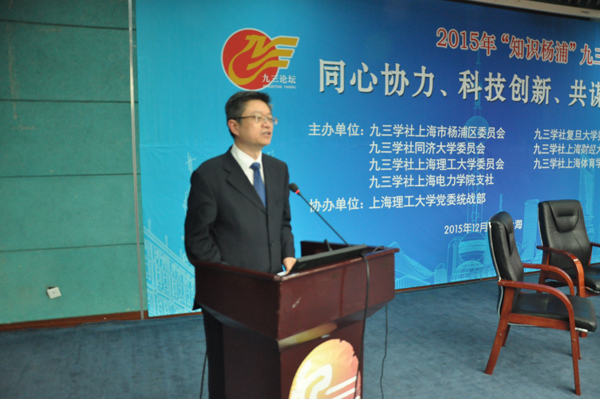 12月2日,“同心协力、科技创新、共谋发展”——“知识杨浦”九三论坛在上海理工大学图文信息中心举行。九三学社上海市委副主委周锋,中共上海理工大学党委副书记刘道平,中共杨浦区委常委、统战部部长王立新,中共杨浦区委统战部副部长毛建国,中共上海理工大学党委组织(统战)部部长李研等出席论坛,杨浦区人民政府副区长、九三学社云南省委副主委解丽平致开幕词,社区委主委任建兴主持论坛,杨浦区有关政府部门和社会团体负责人、统战各界人士百余人出席论坛