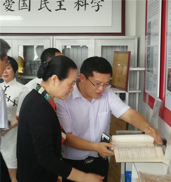 在社九江市濂溪区支社,赵雯看望了工作人员及社员代表,参观了支社办公场所及陈列的社史资料,听取了基层组织工作汇报。